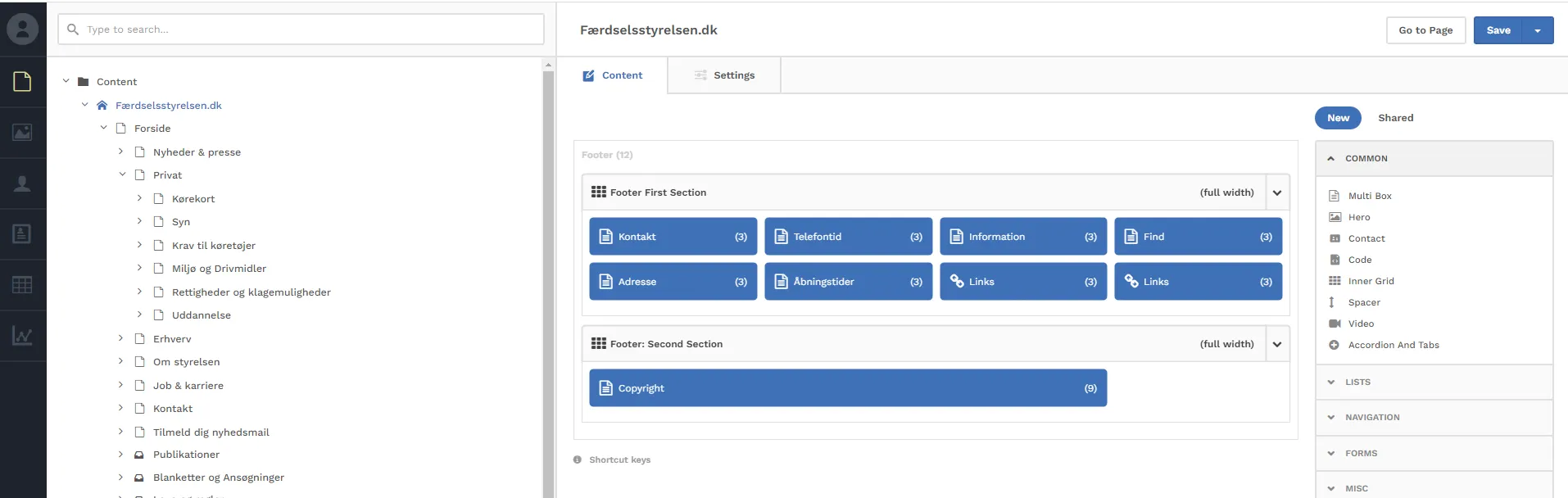 Links i footeren finder I, hvis I vælger hoved-kategorien for selve siden (Færdselsstyrelsen.dk).